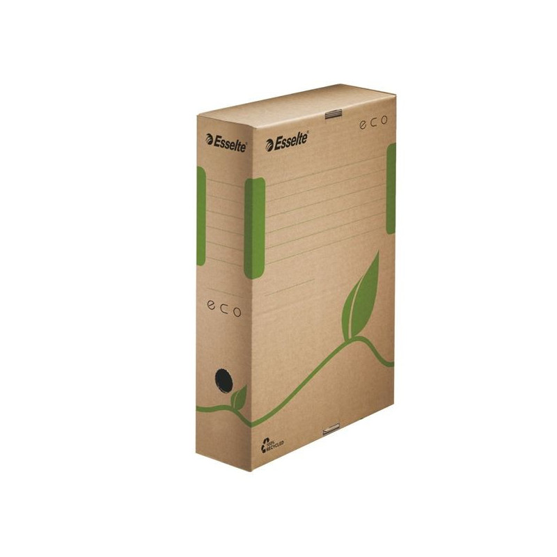 Archivační systém Esselte Eco nabízí funkční krabice navržené se zeleným přístupem. Krabice jsou 100% recyklovatelné s 85% podílem spotřebitelského odpadu a certifikovány FSC. Velikost krabic je optimalizována pouze na papíry A4 s cílem minimalizovat odpad při výrobě.