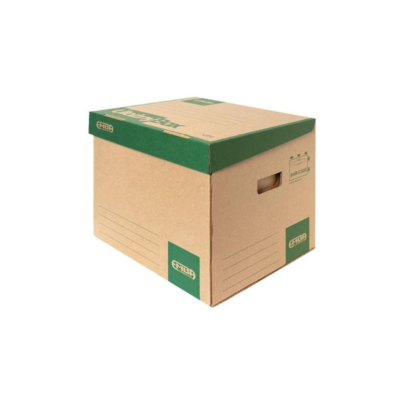 Hnědá pevná krabice pro archivaci 4 pořadačů;