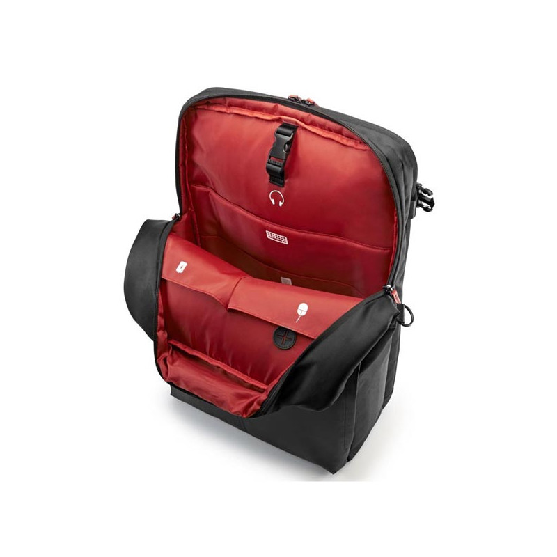 Přehledné možnosti uspořádání, včetně kapes na příslušenství označených ikonou a oddělených přihrádek pro tablet a herní notebook s úhlopříčkou až 43,94 cm (17,3/") – už nikdy nebudete muset nic hledat.