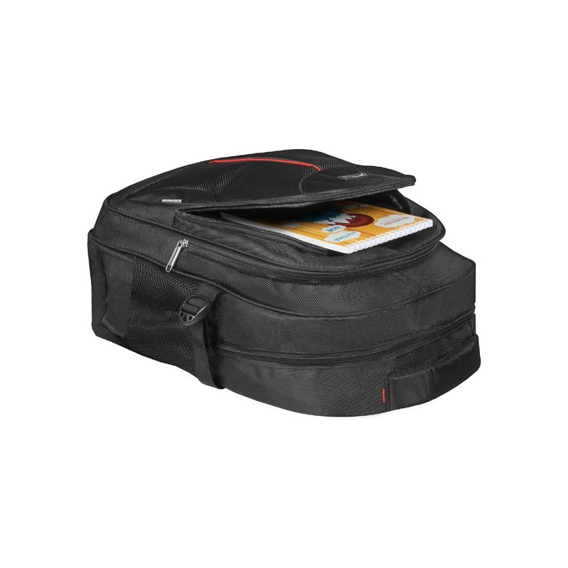 * Hlavní kapsa: Dvě přihrádky (1. zpevněná přihrádka pro notebook, 2. pro dokumenty)