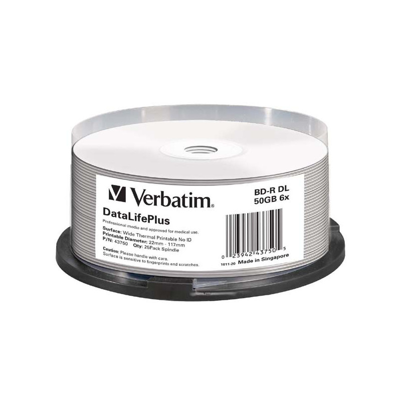 BD-R 50GB 6x Wide White Thermal Printable 25 Pack Spindle - No ID Brand