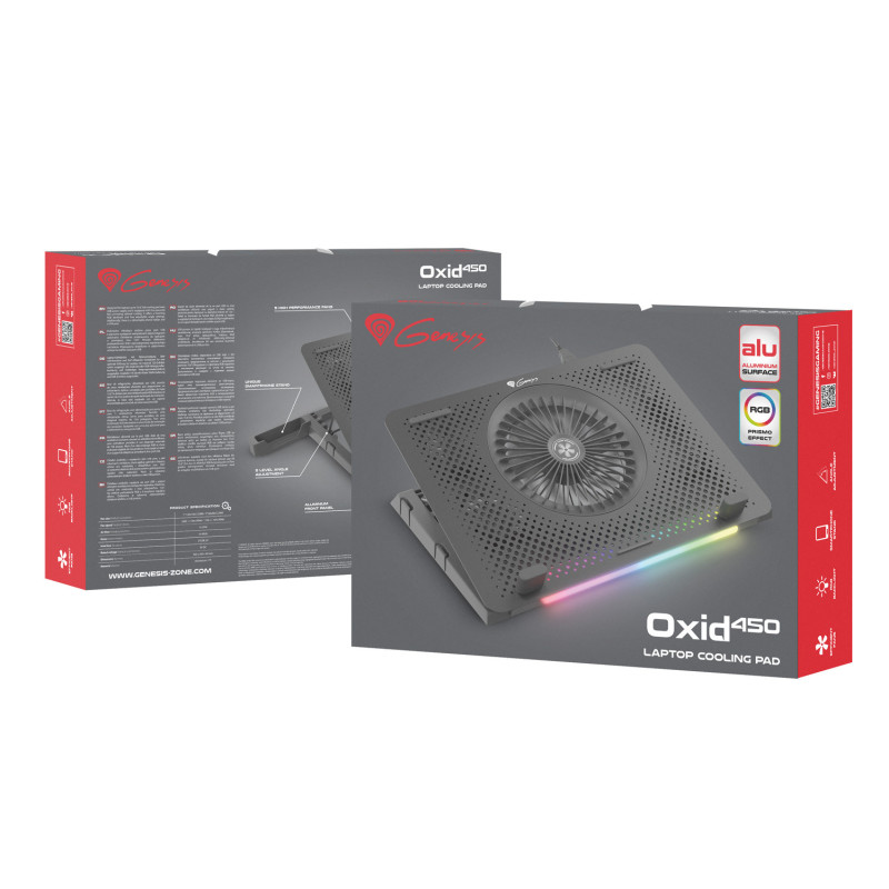 Chladící podložka pro NB Genesis Oxid 450 RGB do 15.6", hliníkové tělo
