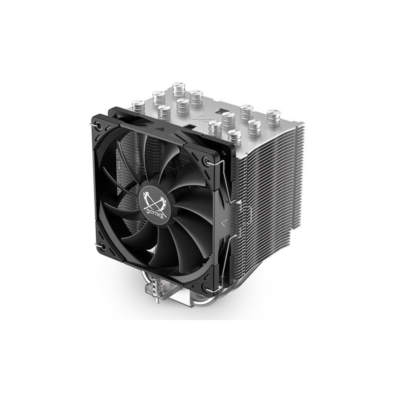 The Mugen 5 Rev. C is equipped with a new Kaze Flex II PWM fan featuring an increased control range of 300 to 1500 RPM. The self-contained liquid bearing (Sealed Precision FDB) reduces friction and wear to a minimum with the help of a special oil film and ensures a high level of stability and an average lifespan of 120,000 hours. Rubberized pads have a decoupling effect and prevent the transmission of any vibrations.