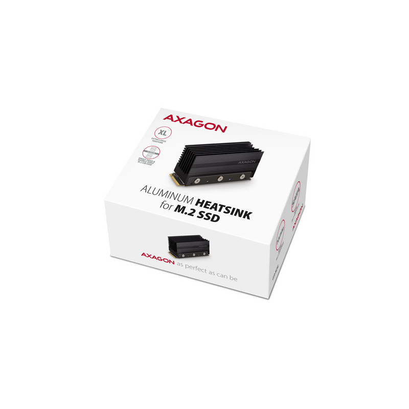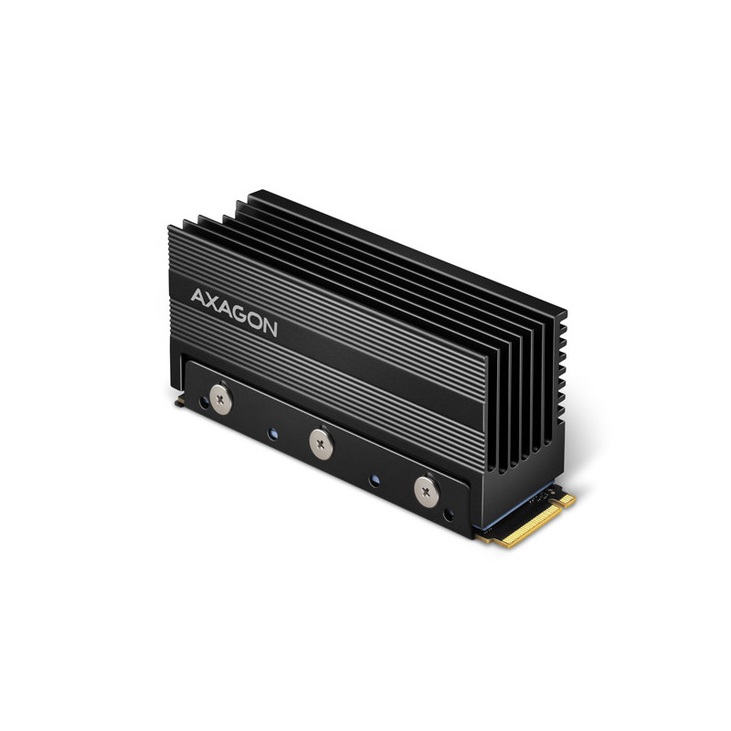 Chladič lze použít nejen s M.2 adaptéry AXAGON, ale také s M.2 (NGFF) sloty na základních deskách apod. Díky velké chladící ploše a kovovému rámečku chladič ideálně odvádí teplo z obou stran M.2 disku a dosahuje tak maximální efektivity chlazení. Vysoká účinnost chlazení činí z tohoto chladiče nejvýkonnější model chladiče značky AXAGON.