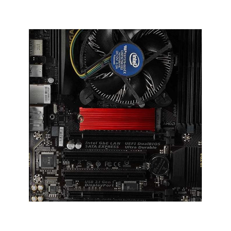 Žebrovaný 8 mm hliníkový chladič napomáhá lepšímu odvodu tepla vzniklého při provozu M.2 SSD disku a umožňuje tak snížit teplotu disku až o 25 °C.