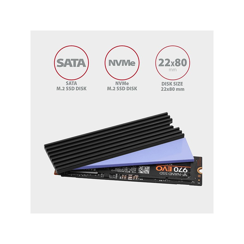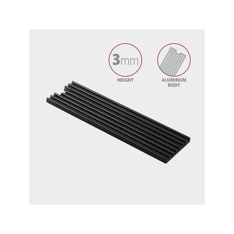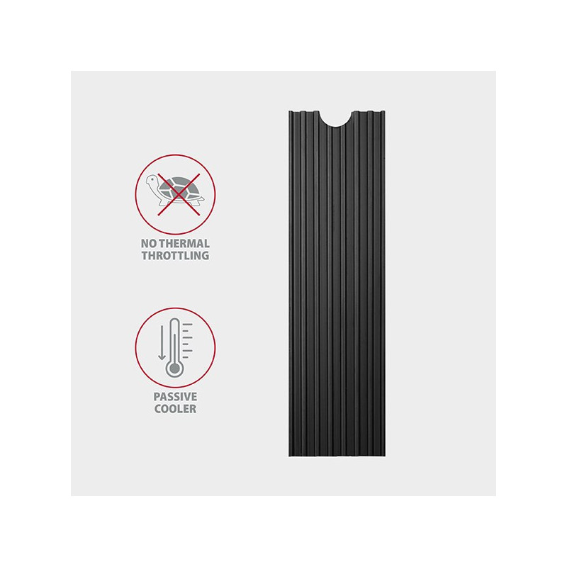 Žebrovaný hliníkový chladič vysoký 3 mm, napomáhá lepšímu odvodu tepla vzniklého při provozu M.2 SSD disku a umožňuje tak snížit teplotu disku až o 15 °C. Prodlužuje se tak životnost M.2 SSD disku a zamezí se zpomalování rychlosti disku tzv. „Thermal Throttling“.