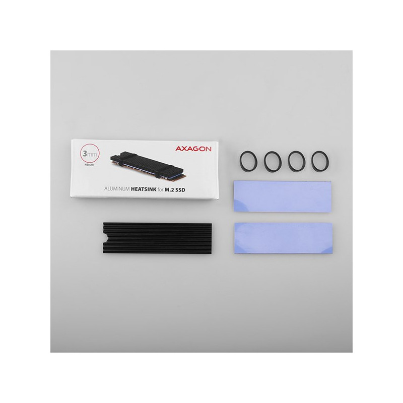 Díky snadné montáži a kompaktním rozměrům lze chladič použít nejen s M.2 adaptéry AXAGON, ale také s M.2 (NGFF) sloty na základních deskách apod. Nízký profil chladiče umožní použití v omezeném prostoru.