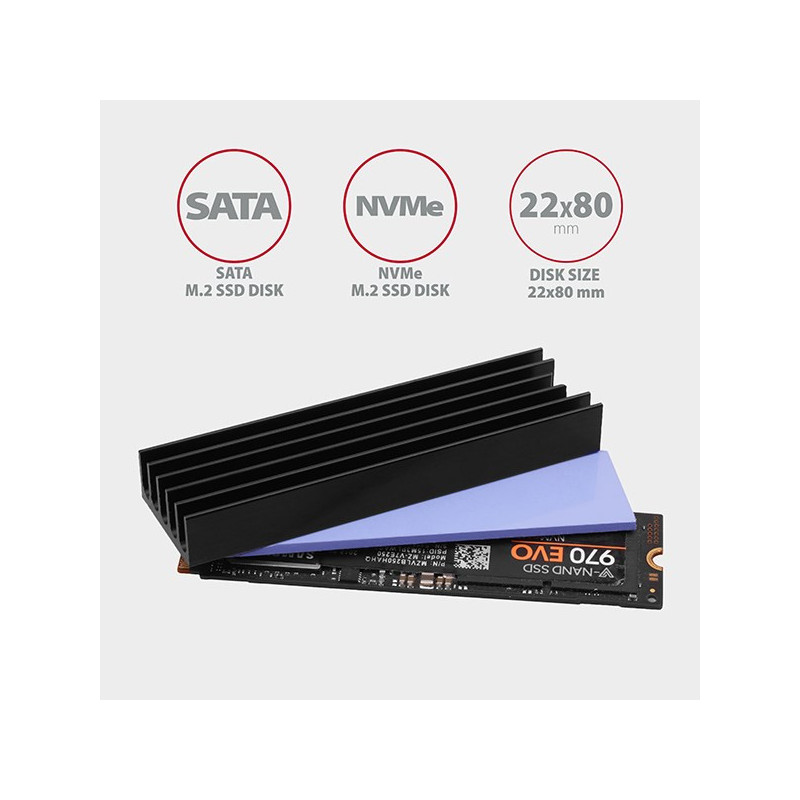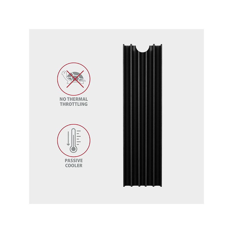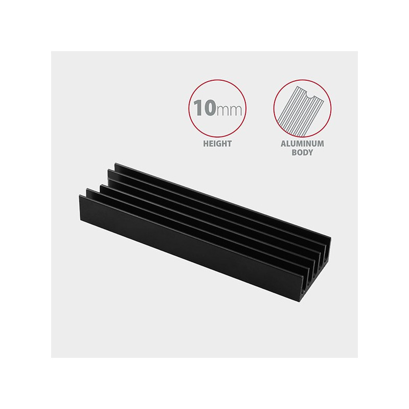 Žebrovaný hliníkový chladič vysoký 10 mm napomáhá lepšímu odvodu tepla vzniklého při provozu M.2 SSD disku a umožňuje tak snížit teplotu disku až o 25 °C. Prodlužuje se tak životnost SSD disku a zamezí se zpomalování rychlosti disku tzv. „Thermal Throttling“.