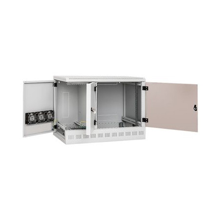 Svařovaný nástěnný rozvaděč s třemi sekcemi, krytím IP20 a nosností 50 kg.