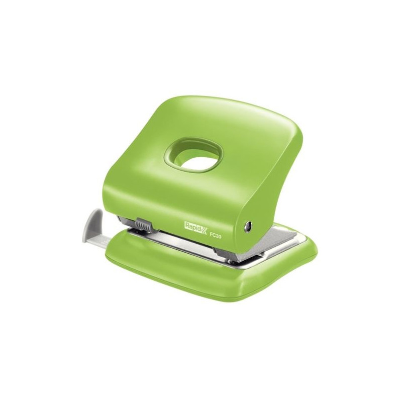 Kancelářská děrovačka s praktickým otvorem pro vysypání konfet * Možnost aretace v ploché poloze pro snazší skladování * Příložník pro standartní formáty A4, A5, A6 * Rozměry: 11,0 x 6,6 x 11,8 cm (š x v x h) * Výkon 30 listů * Záruka 5 let