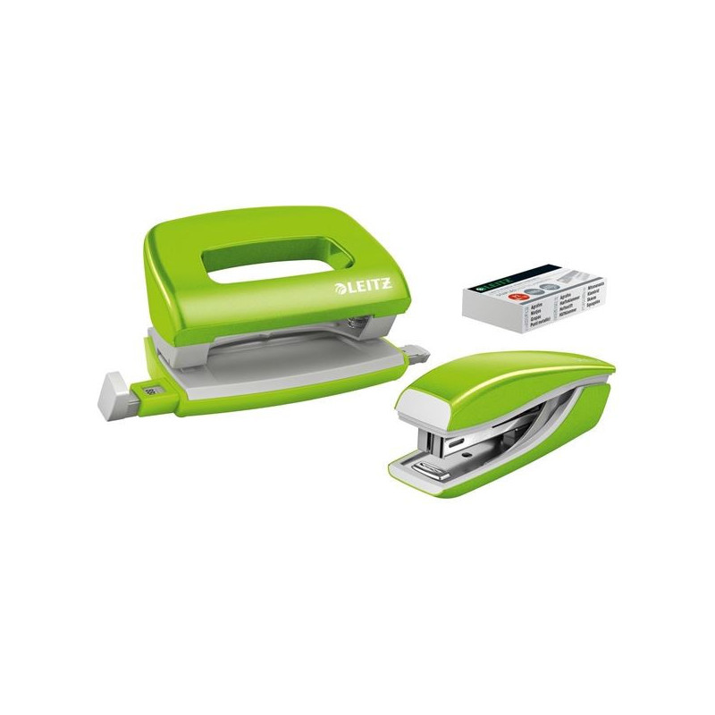 Sada mini sešívačky a děr. Leitz WOW - zelená