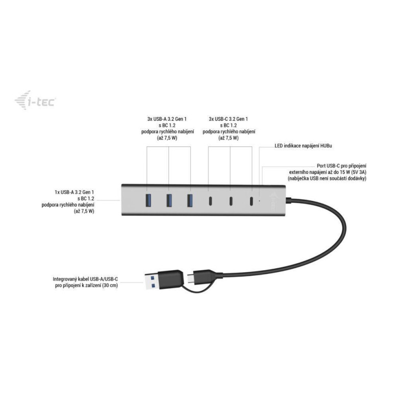 • Nabíjecí HUB USB-A/USB-C, až pro 7 zařízení