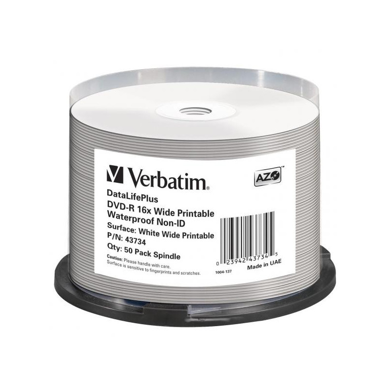 Široký, bílý, lesklý, vodě odolný, inkoustem po-tisknutelný disk má bílý povrch, na který je možno tisknout, až k náboji a po-tisknutelný průměr 21-118 mm. Má vodě odolný povrch a lesklou povrchovou úpravou.