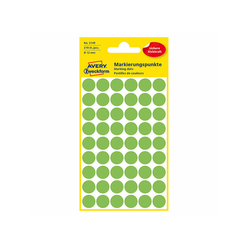 *Kulaté značkovací etikety ve třech velikostech a různých barvách *Vhodné pro ruční popis *Neonově zelená, průměr 12 mm *270 ks v balení, 54 ks na archu