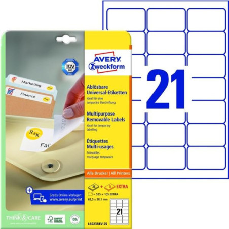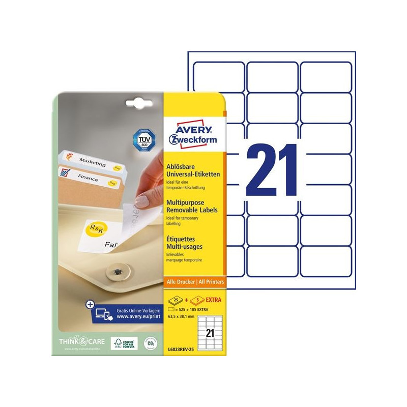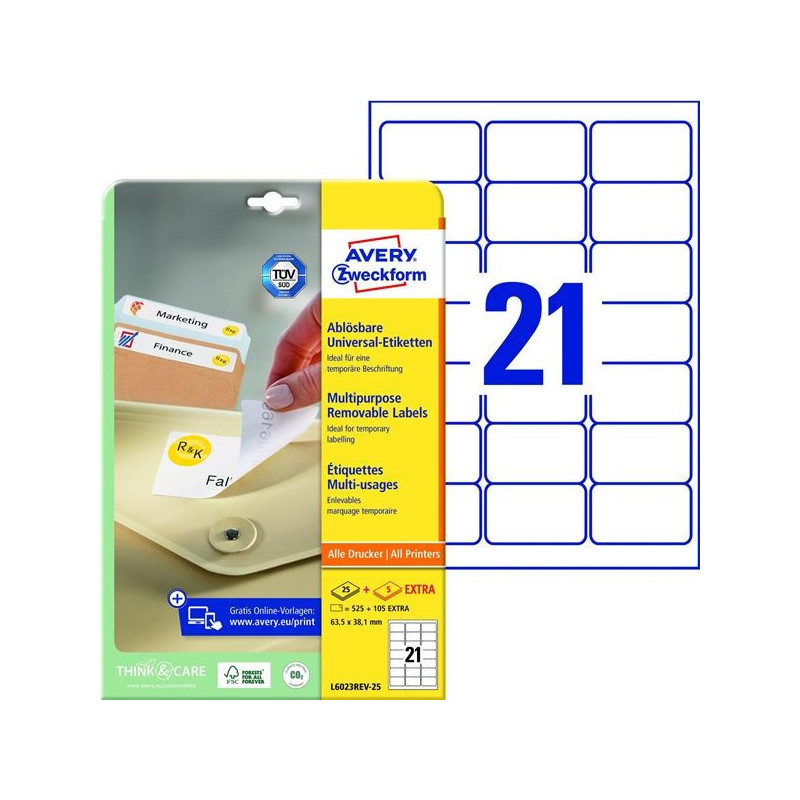 *FSC certifikace *Aktuální balení obsahuje 525 + 105 ks etiket navíc * Online šablony a software zdarma na www.avery-zweckform.cz.