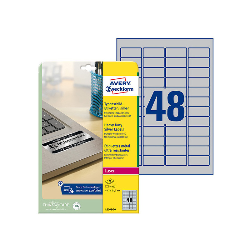 *Velmi odolné polyesterové etikety *Ideální pro trvalé označení majetku, výrobků varovné nápisy či instrukce *Odolné vůči prachu, natržení, vodě, UV záření a vlivům počasí a teplotním změnám -40 °C do +150 °C *Vhodné pouze pro černobílé laserové tiskárny *Na etikety lze psát propiskou či lihovým fixem - text je poté trvalý. Při použití fixu na bílé tabule lze text poté z etikety odstranit *Online šablony a software zdarma ke stažení na www.avery-zweckform.cz