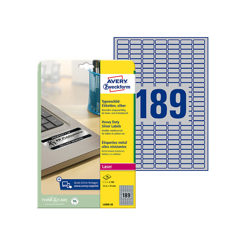 *Velmi odolné polyesterové etikety *Ideální pro trvalé označení majetku, výrobků varovné nápisy či instrukce *Odolné vůči prachu, natržení, vodě, UV záření a vlivům počasí a teplotním změnám -40 °C do +150 °C *Vhodné pouze pro černobílé laserové tiskárny *Na etikety lze psát propiskou či lihovým fixem - text je poté trvalý. Při použití fixu na bílé tabule lze text poté z etikety odstranit *Online šablony a software zdarma ke stažení na www.avery-zweckform.cz