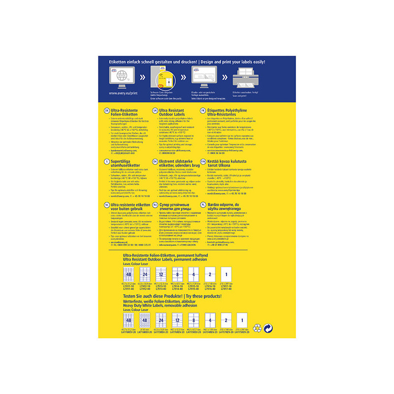 *Etikety se zaoblenými rohy do těch nejnáročnějších podmínek *Jejich vlastnosti oceníte jak v interiéru, tak ve venkovním prostředí *Silná přilnavost etiket k různým povrchům, odolnost vůči mořské vodě, mastnotě, špíně, UV záření a teplotám mezi -40°C a + 150°C *Díky těmto vlastnostem se skvěle hodí zejména pro značení ve výrobě, skladech, ke značení kontejnerů apod *Navíc jsou tyto omyvatelné etikety odolné vůči mnohým rozpouštědlům a čisticím prostředkům *Ostrý tisk, který se nerozmazává a vysoká lepivost na nejrůznějších typech povrchů *Vhodné pro černobílý nebo barevný tisk v laserových tiskárnách