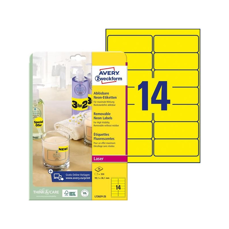 *Etikety snadno upoutají pozornost, jsou ideální pro vytvoření dobře viditelných označení, při prodeji výrobků, promočních aktivitách nebo speciálních nabídkách * Určené pro laserové tiskárny a kopírovací stroje * Stick & Lift technologie umožňuje odejmutí etikety bez zanechání stop po lepidle * Online šablony a software zdarma ke stažení na www.avery-zweckform.cz.