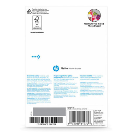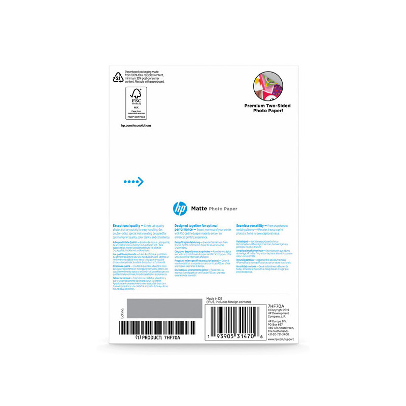 HP - Matný - 8,8 mil - 100 x 150 mm - 180 g/m2 - 25 listy fotografický papír - pro Deskjet 37XX, 4158; Envy Inspire 7255, 7955; Officejet 9012; Smart Tank 51X, 73XX, 76XX
