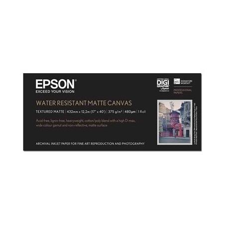 Nabízí povrchovou vrstvu s vysokým rozlišením, dostatečně flexibilní pro vypnutí bez průvěsů, a jemnou strukturu působící opravdu uměleckým dojmem. V kombinaci s okouzlující reprodukcí barev vytváří papír Water Resistant Matte Canvas matnou, ihned schnoucí a voděodolnou plochu vhodnou pro všechny aplikace, které vyžadují dokonalou obrazovou kvalitu a předpokládají dlouhodobé vystavení.