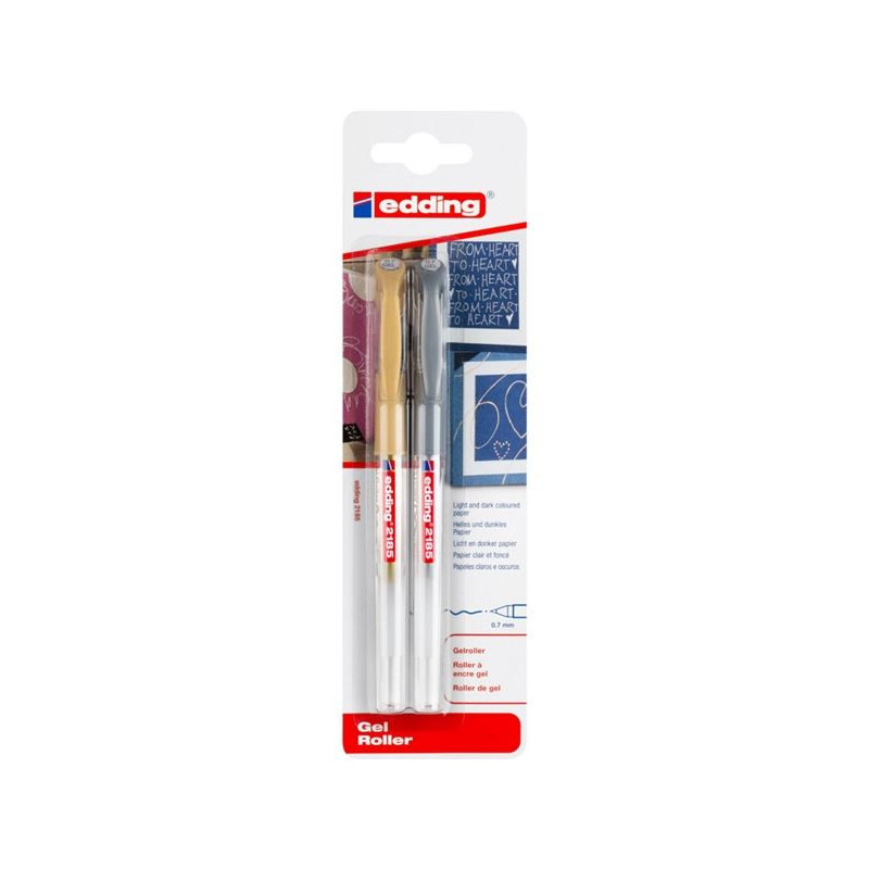 *Metalický gelový roller s kovovým hrotem a pogumovaným úchopem pro vytváření originálních vánočních přání, komplimentek, pohlednic a drobných dárků *Roller edding 2185 využijete pro přesné psaní na světlý papír a v případě zlaté a stříbrné i na papír tmavý *Inkoust na bázi vody *Šíře stopy: 0,7 mm *Sada dvou barev (zlatá a stříbrná) v blistru