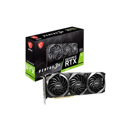 MSI GeForce RTX™ 3060 VENTUS 3X 12G OC * TORX Fan 3.0: vytváří vysoký statický tlak a posouvá hranice tepelného výkonu * Zero Frozr: udržuje ventilátory v klidu a tichu, dokud není potřeba chlazení Grafický čip: NVIDIA® GeForce RTX™ 3060 CUDA cores: 3584 Rozhraní: PCI Express® Gen 4 Paměťová sběrnice: 192bit Rychlost paměti: 15Gb/s Velikost paměti: 12GB GDDR6 OpenGL®: 4.6 DirectX: 12 API Takt jádra: Boost: 1807MHz Maximální počet displejů: 4 Maximální rozlišení: 7680×4320 Porty: * 3x DisplayPort 1.4a * 1x HDMI 2.1 Chlazení: 3x ventilátor Rozměry: 316x120x42mm Hmotnost: 753g Požadavky na systém: * doporučený výkon zdroje 550W * 1x 8pinový napájecí konektor