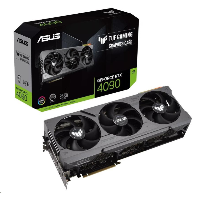 ASUS TUF Gaming GeForce RTX 4090 24GB GDDR6X optimized inside and out for lower temps and durability.