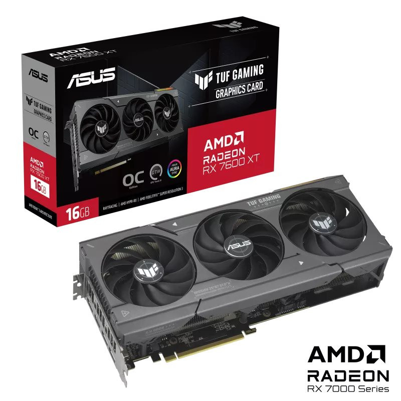 ASUS TUF Gaming Radeon™ RX 7600 XT OC Edition 16GB GDDR6 optimalizovaný zevnitř i zvenku pro nižší teploty a odolnost.