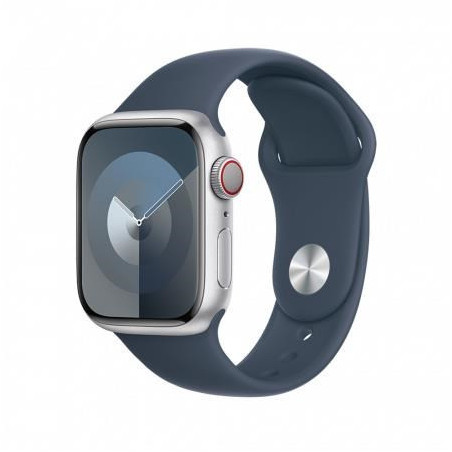 Apple Watch Series 9 • GPS + Cellular • 45mm pouzdro ze stříbrného hliníku • Bouřkově modrý sportovní řemínek – S/M