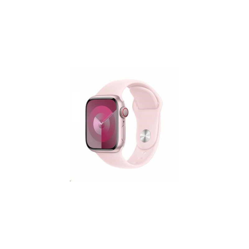 Apple Watch Series 9 • GPS + Cellular • 41mm pouzdro z růžového hliníku • Světle růžový sportovní řemínek – S/M