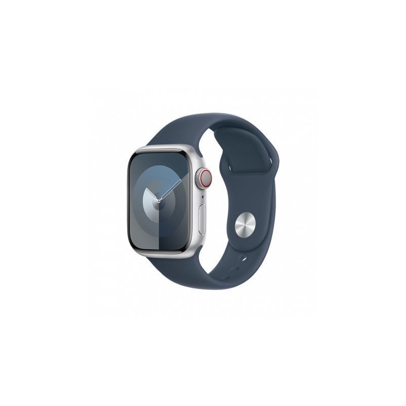 Apple Watch Series 9 • GPS + Cellular • 45mm pouzdro ze stříbrného hliníku • Bouřkově modrý sportovní řemínek – M/L