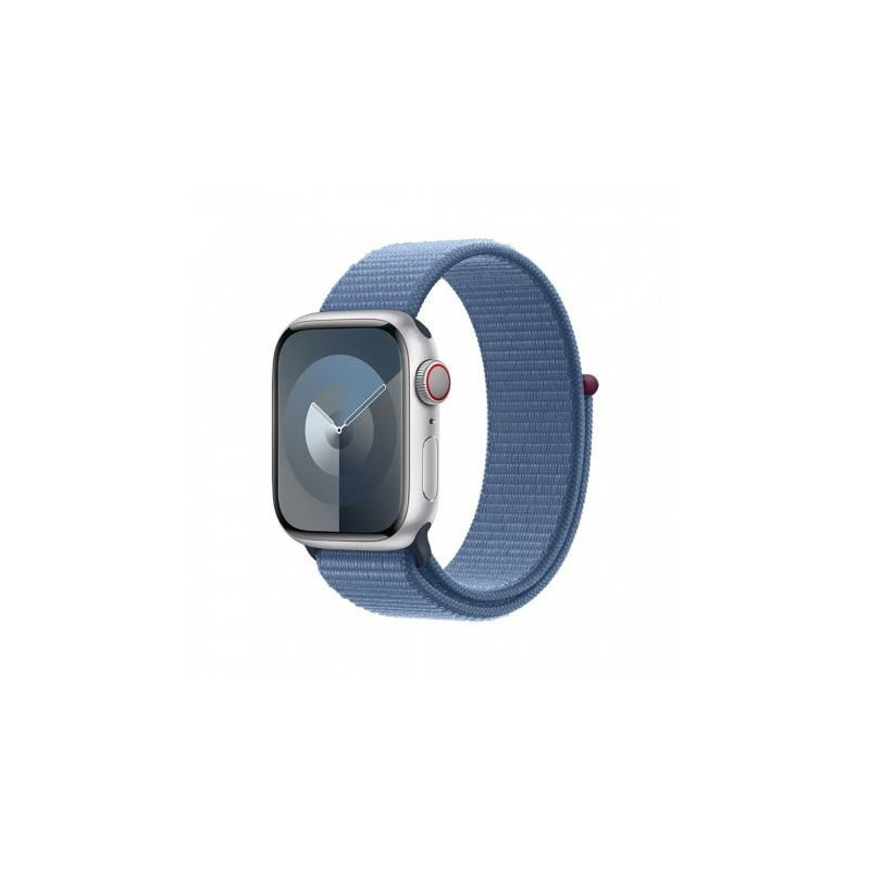 Apple Watch Series 9 • GPS + Cellular • 45mm pouzdro ze stříbrného hliníku • Ledově modrý provlékací sportovní řemínek