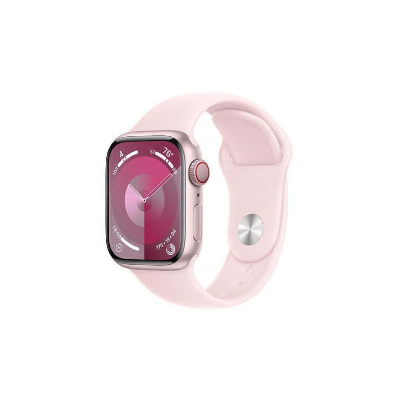 Apple Watch Series 9 • GPS + Cellular • 45mm pouzdro z růžového hliníku • Světle růžový sportovní řemínek – S/M