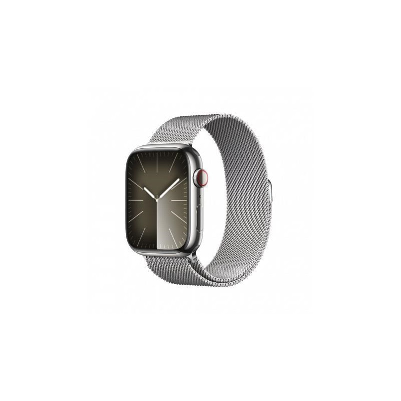 Apple Watch Series 9 • GPS + Cellular • 45mm pouzdro ze stříbrné nerezové oceli • Stříbrný milánský tah