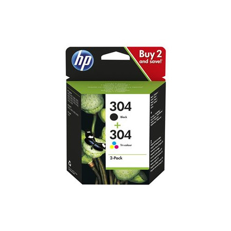 HP 304 - 2-balení - černá, barva (azurová, purpurová, žlutá) - originální - inkoustová cartridge - pro AMP 130; Deskjet 26XX, 37XX; Envy 50XX