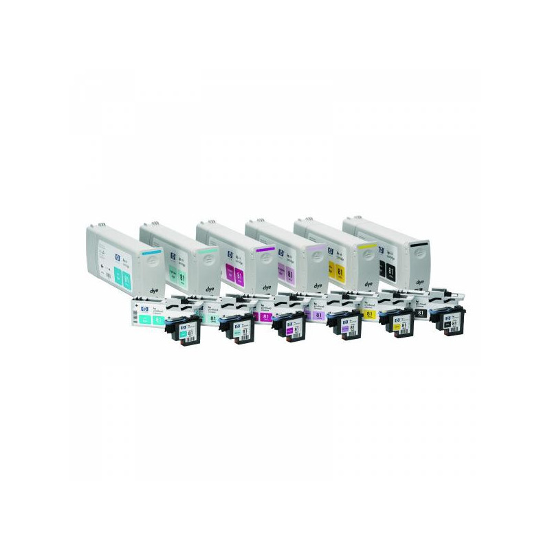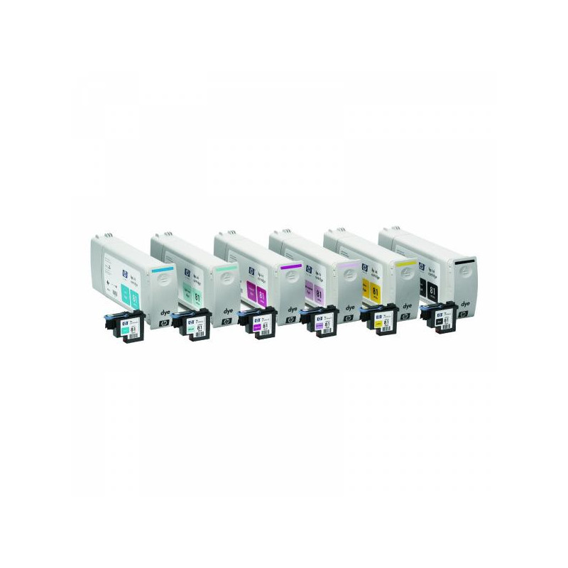 Inkoustové kazety HP č. 81 Dye-based byly navrženy tak, aby spolupracovaly s tiskovými hlavami HP č. 81 Dye-based a vytvářely tak modulární inkoustový systém. Šest speciálně navržených barevných inkoustů dye-based poskytuje plynulejší přechody barev a širší barevný gamut. Tyto velkokapacitní inkoustové kazety s objemem inkoustu 680 ml jsou ideální pro tisk přes noc nebo bezobslužný produkční tisk. Vestavěné inteligentní funkce trvale monitorují hladiny inkoustu v kazetách a informují, jestliže je třeba některou kazetu vyměnit.