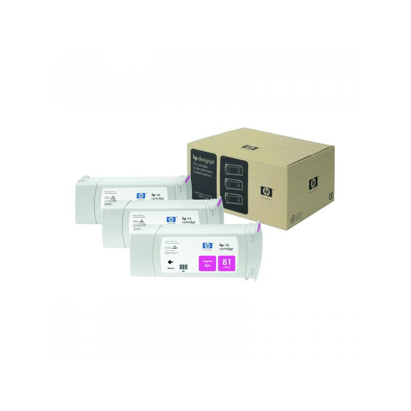 Inkoustové kazety HP č. 81 Dye-based byly navrženy proto, aby spolu s tiskovými hlavami HP č. 81 Dye-based vytvářely modulární inkoustový systém. Šest barevných inkoustů Dye-based se speciálním složením poskytuje plynulejší přechody barev a širší barevný gamut. Tyto velkokapacitní inkoustové kazety s objemem inkoustu 680 ml jsou ideální pro bezobslužný produkční tisk. Vestavěné inteligentní čipy trvale monitorují hladiny inkoustu v inkoustových kazetách a informují o nutnosti výměny.