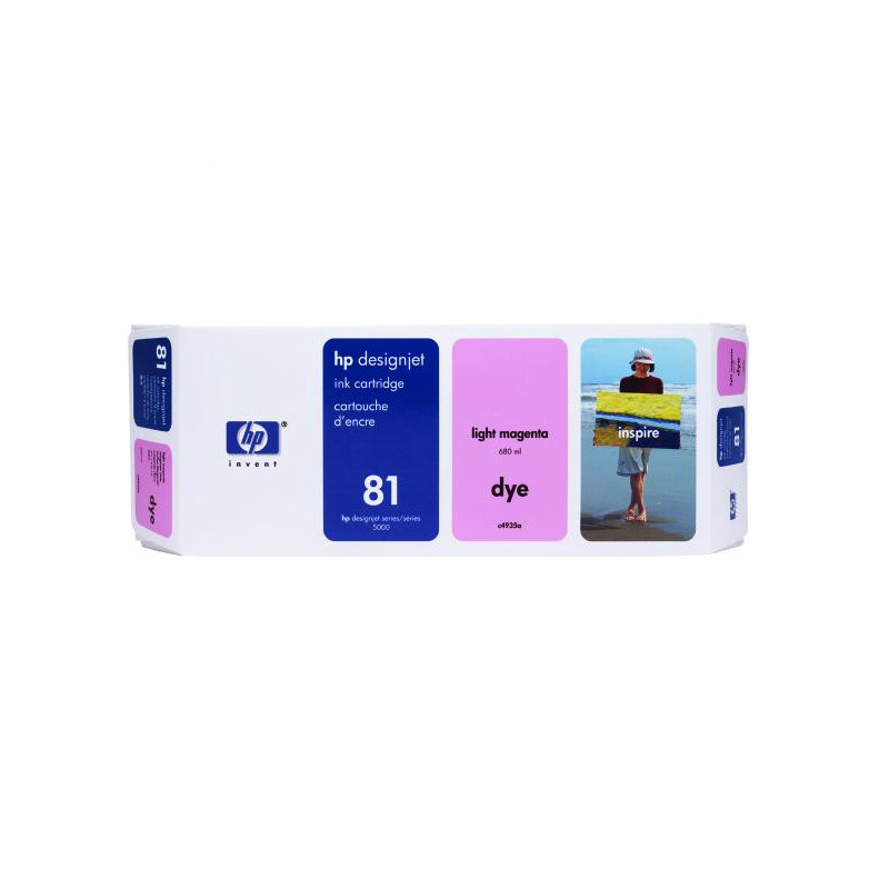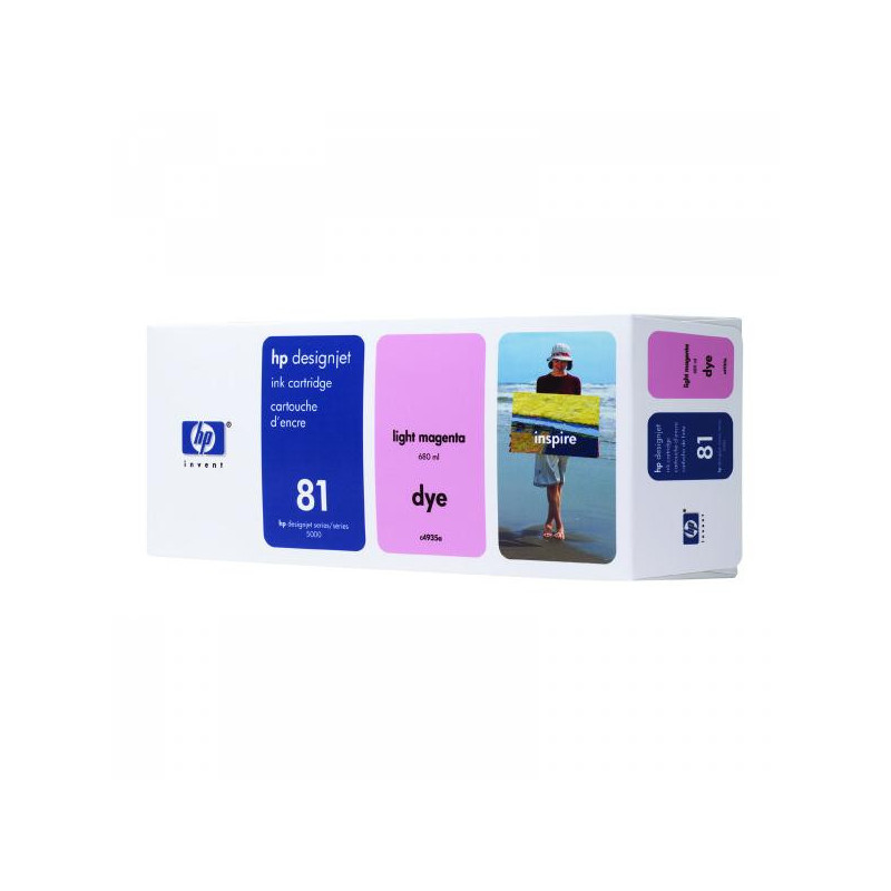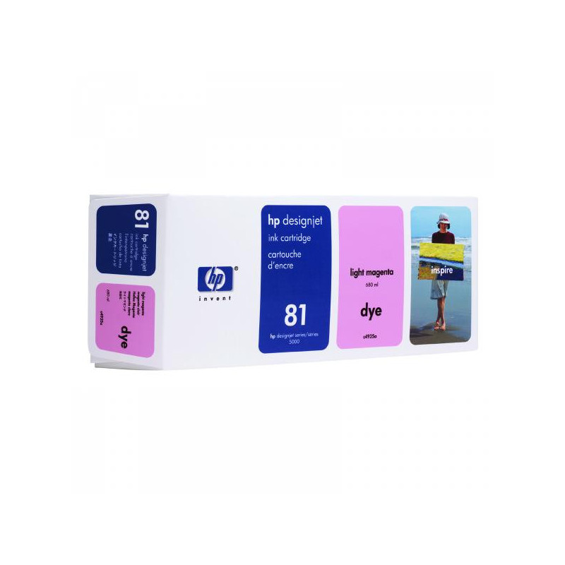 Inkoustové kazety HP č. 81 Dye-based byly navrženy proto, aby spolu s tiskovými hlavami HP č. 81 Dye-based vytvářely modulární inkoustový systém. Šest barevných inkoustů Dye-based se speciálním složením poskytuje plynulejší přechody barev a širší barevný gamut. Tyto velkokapacitní inkoustové kazety s objemem inkoustu 680 ml jsou ideální pro bezobslužný produkční tisk. Vestavěné inteligentní čipy trvale monitorují hladiny inkoustu v inkoustových kazetách a informují o nutnosti výměny.