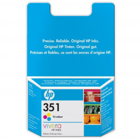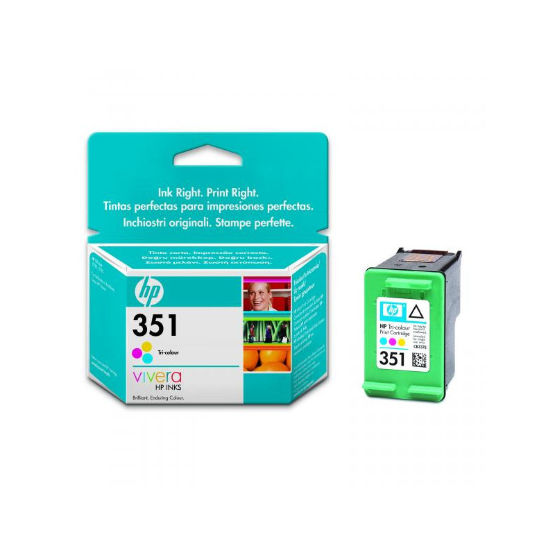 Tříbarevná inkoustová tisková kazeta HP 351 s inkousty Vivera vytváří ostré, živé a odolné barvy a je vhodná pro běžný tisk. Při volbě této originální inkoustové kazety HP navržené pro občasný tisk menšího množství dokumentů oceníte výhodnost jejího použití.