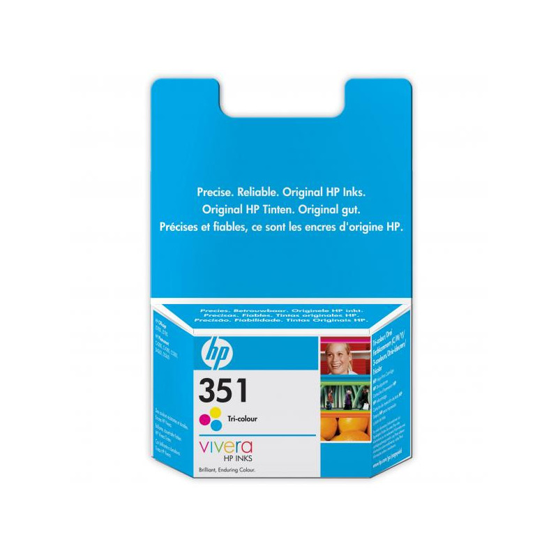 Pro občasný tisk menších objemů dokumentů zvolte tříbarevnou inkoustovou kazetu HP 351 s originálními inkousty HP. S originálním spotřebním materiálem HP, který splní vaše požadavky na tisk a nezatíží váš rozpočet, zvolíte to pravé. Získejte spolehlivost výrobků HP za dostupnou cenu.