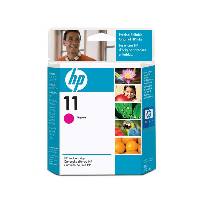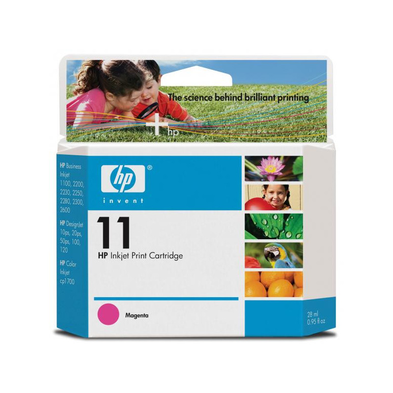 Inkoustové kazety HP 11 jsou samostatné jednobarevné kazety s vestavěnými inteligentními čipy. Představují klíčovou komponentu modulárního systému dávkování inkoustu HP, která vytváří ultra malé kapičky inkoustu a zajišťuje tak špičkovou kvalitu a mimořádné rychlosti tisku.