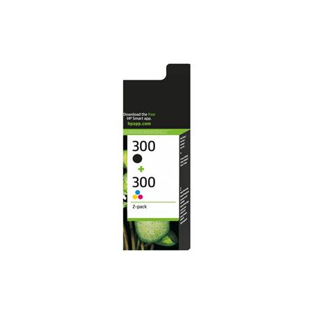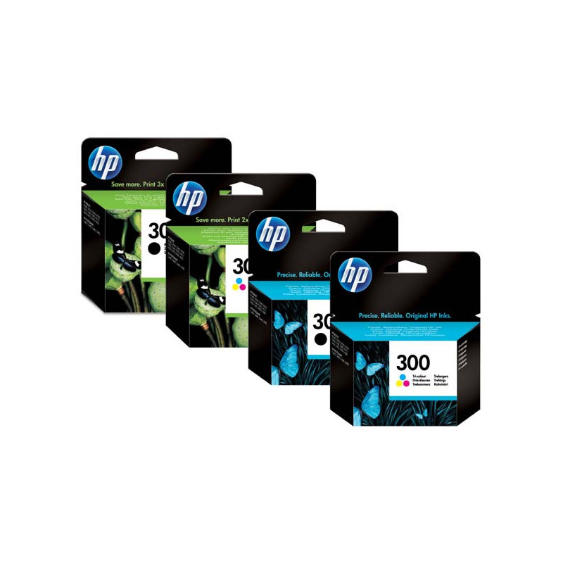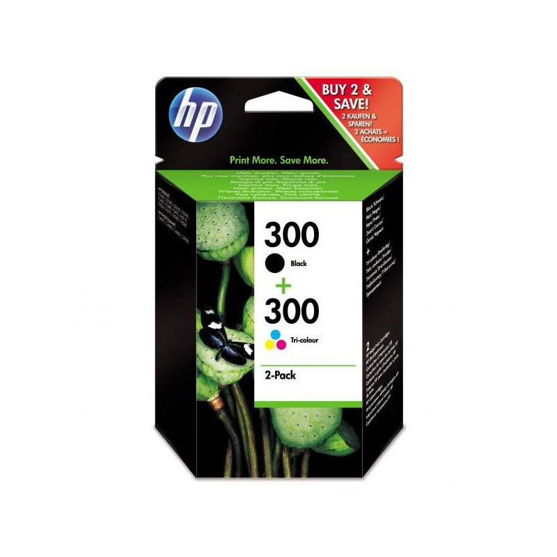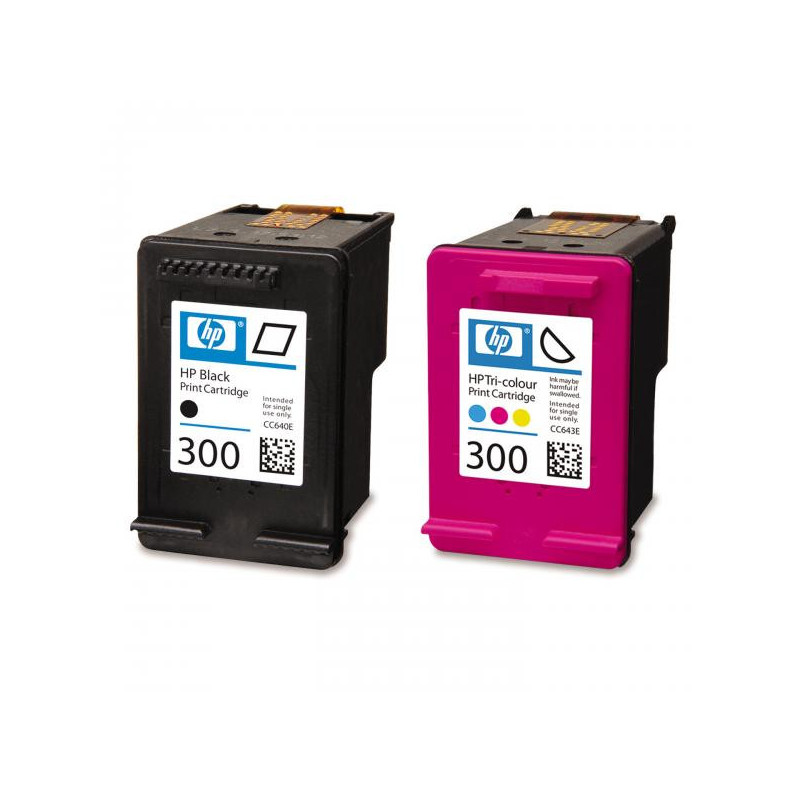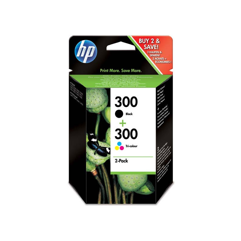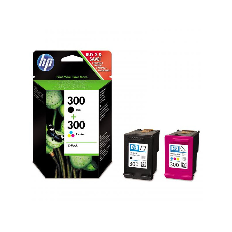 Černé/tříbarevné inkoustové kazety v sadě HP 300 Combo-pack tisknou textové dokumenty a obrazy v laserové kvalitě a jsou odolné vůči vyblednutí. Tyto originální inkoustové kazety HP jsou navrženy tak, aby poskytovaly snadno použitelné funkce za dostupnou cenu.