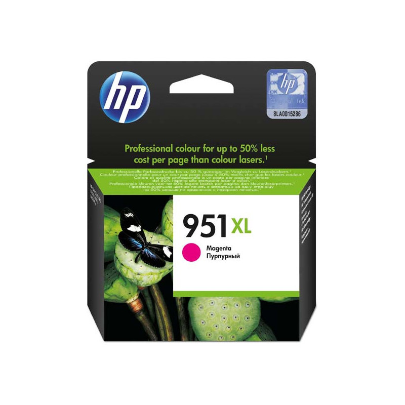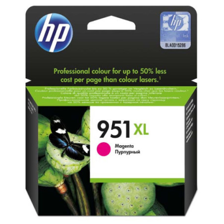 Díky purpurové inkoustové kazetě HP 951XL Officejet bude každý váš dokument působit skutečně profesionálně. Oživte své dokumenty a marketingové materiály jasnými barvami a dosáhněte nižších nákladů na stranu než při laserovém tisku.