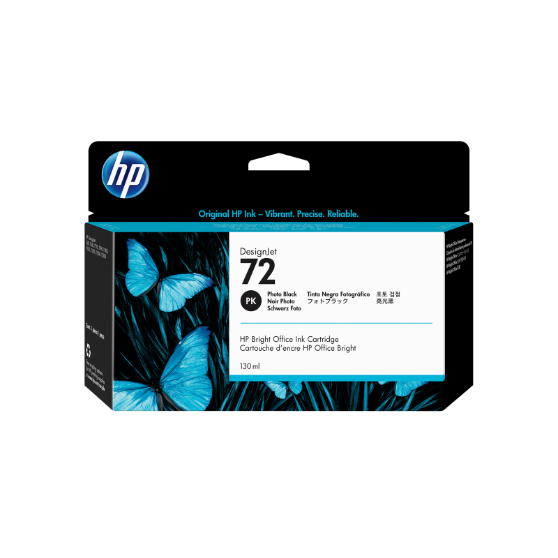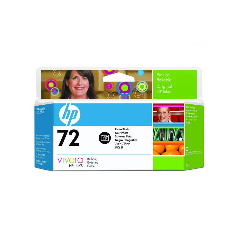 Černá fotografická inkoustová kazeta HP 72 o objemu 130 ml s inkoustem Vivera poskytuje spolehlivý, bezproblémový tisk. Výsledkem je ostrý, jasný a rychle schnoucí tisk. Originální tiskové kazety HP s inkousty HP Vivera umožňují profesionální výsledky při zachování vysoké produktivity.