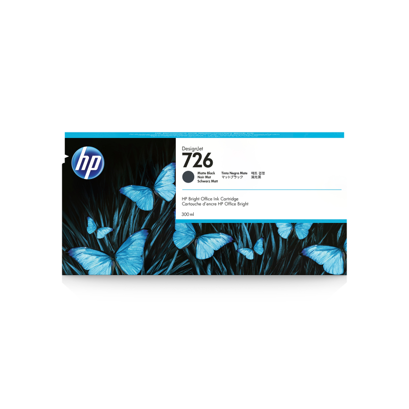 Inkoustové kazety HP 726 s 300 ml matného černého inkoustu poskytují přesné, živé a rychle schnoucí výtisky a zaručují spolehlivý a bezproblémový tisk. Originální tiskové kazety HP s inkousty HP Vivera vám pomohou dosáhnout profesionálních výsledků při zachování vysoké produktivity.