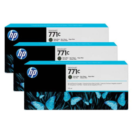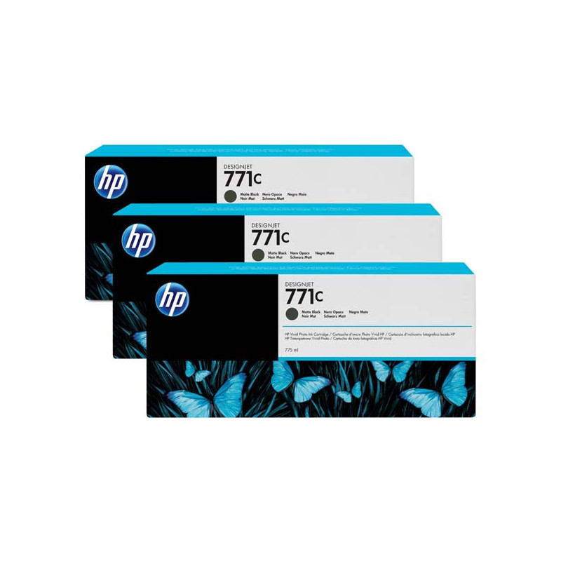 Trojbalení 775ml matných černých inkoustových kazet Designjet HP 771 zaručuje vysokou kvalitu splňující očekávání vašich zákazníků i v případě tisku vysoké fotografické kvality. Fotografické inkousty HP Vivid pomáhají rychle reagovat, protože zaručují kvalitní, rychlý, snadný a bezproblémový tisk.