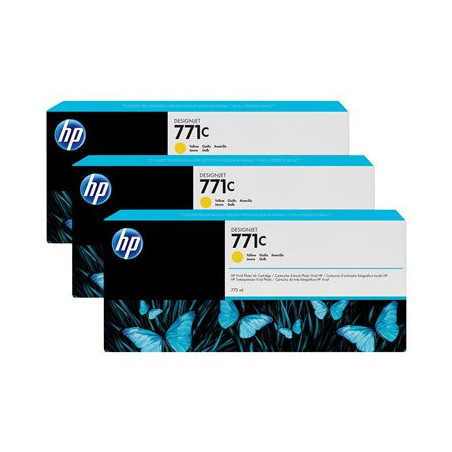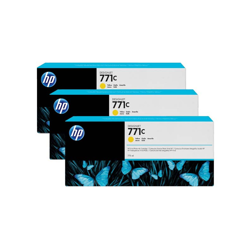 Trojbalení 775ml žlutých inkoustových kazet Designjet HP 771 zaručuje vysokou kvalitu splňující očekávání vašich zákazníků i v případě tisku vysoké fotografické kvality. Fotografické inkousty HP Vivid pomáhají rychle reagovat, protože zaručují kvalitní, rychlý, snadný a bezproblémový tisk.