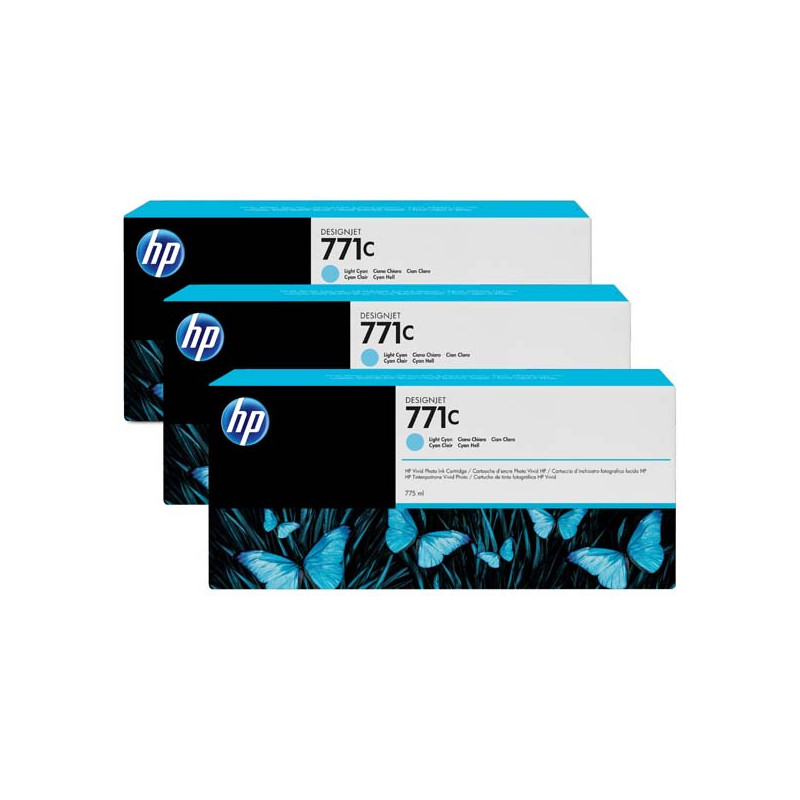 Trojbalení 775ml světle azurových inkoustových kazet Designjet HP 771 zaručuje vysokou kvalitu splňující očekávání vašich zákazníků i v případě tisku vysoké fotografické kvality. Fotografické inkousty HP Vivid pomáhají rychle reagovat, protože zaručují kvalitní, rychlý, snadný a bezproblémový tisk.