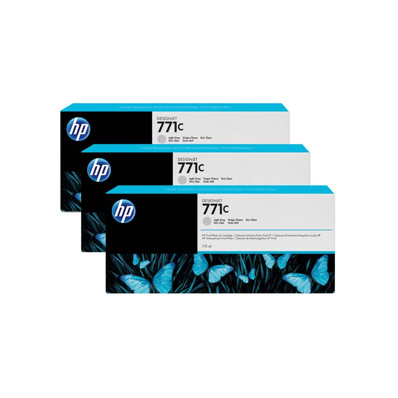 Trojbalení 775ml světle šedých inkoustových kazet Designjet HP 771 zaručuje vysokou kvalitu splňující očekávání vašich zákazníků i v případě tisku vysoké fotografické kvality. Fotografické inkousty HP Vivid pomáhají rychle reagovat, protože zaručují kvalitní, rychlý, snadný a bezproblémový tisk.